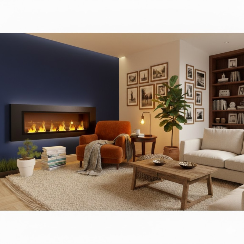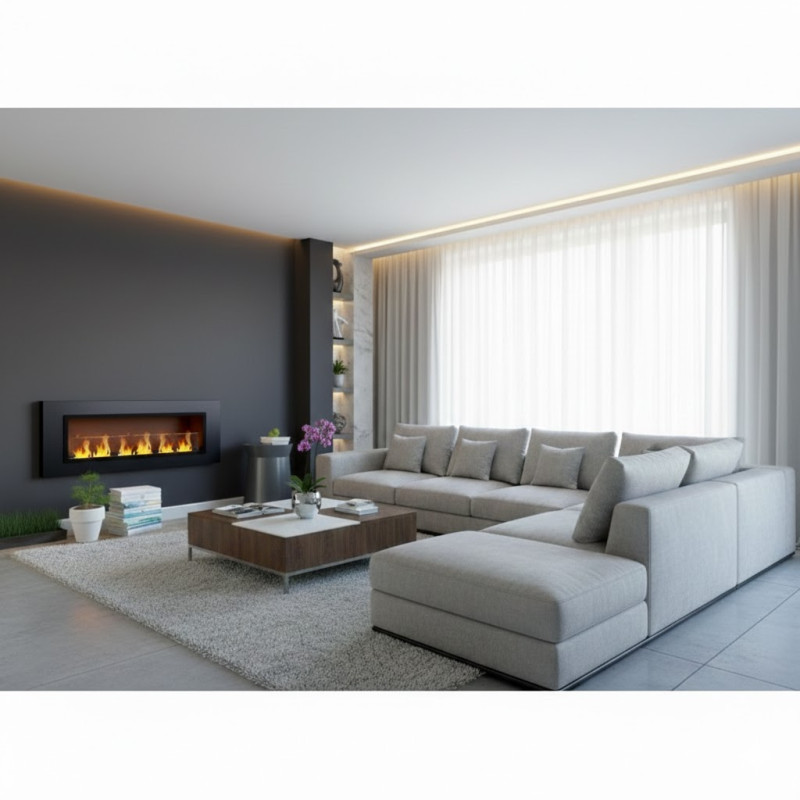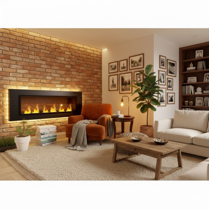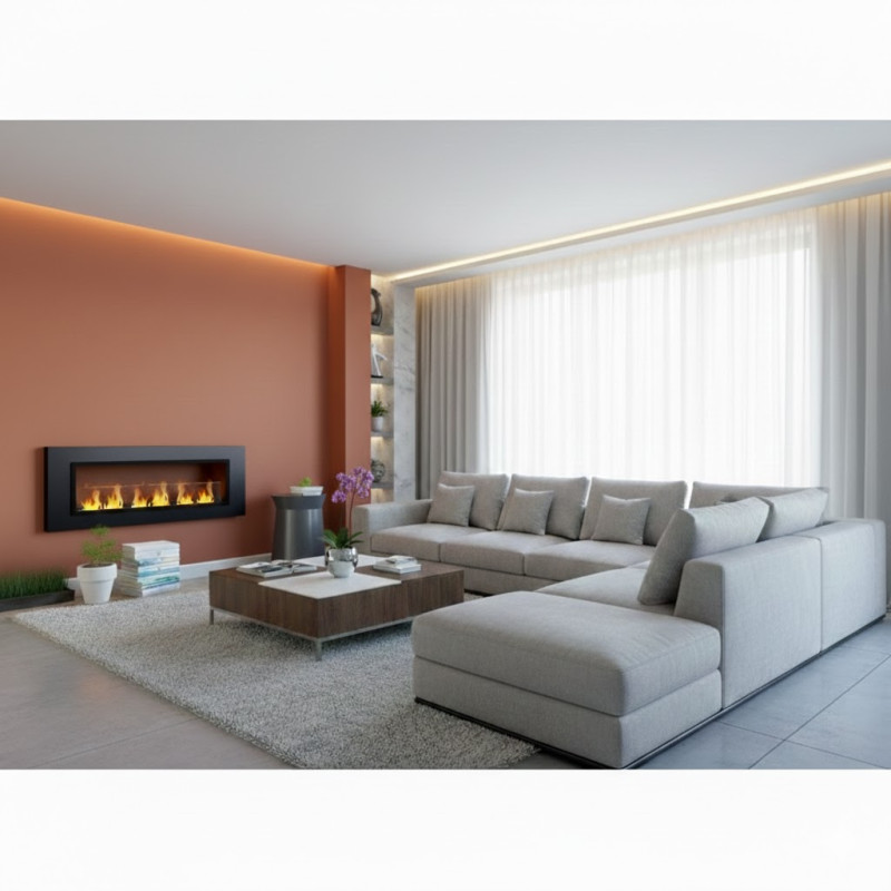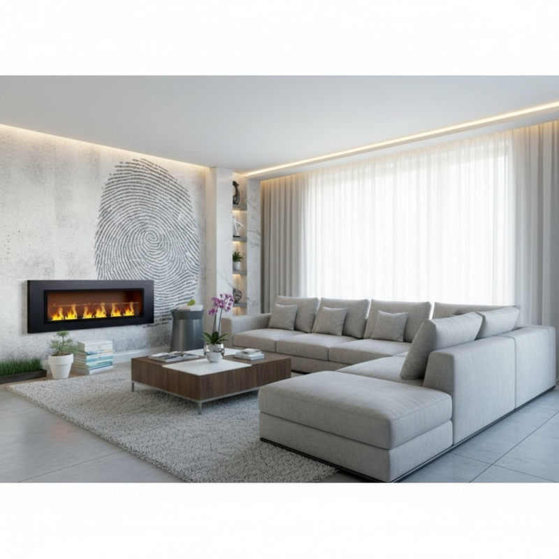 Il suo formato di 16:9 è di facile montaggio, i 6 bruciatori hanno una capienza di ca 0,5 litri cada uno, si tratta di 6 bruciatori non regolabili pertanto la loro autonomia è di circa 2 ore si adatta perfettamente a qualsiasi tipo di ambiente, puo' essere appeso o incassato.