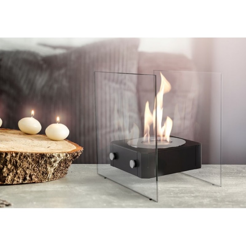 Un inserto assorbente al centro del contenitore riduce il consumo di bioetanolo e protegge da eventuali fuoriuscite in caso di ribaltamento.