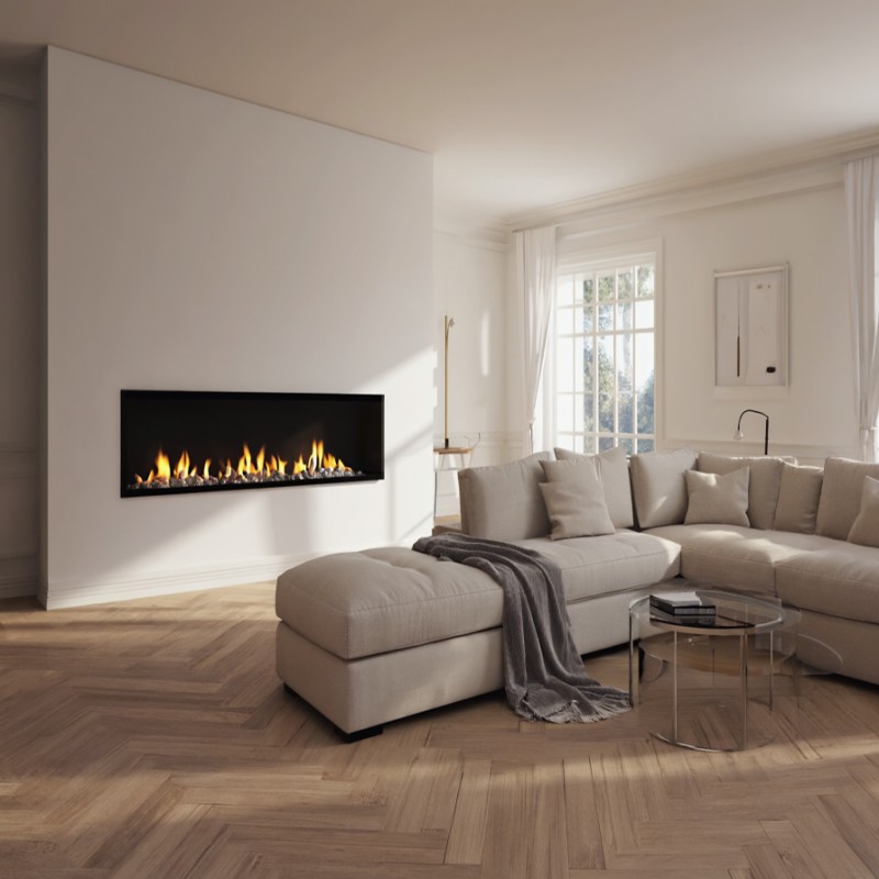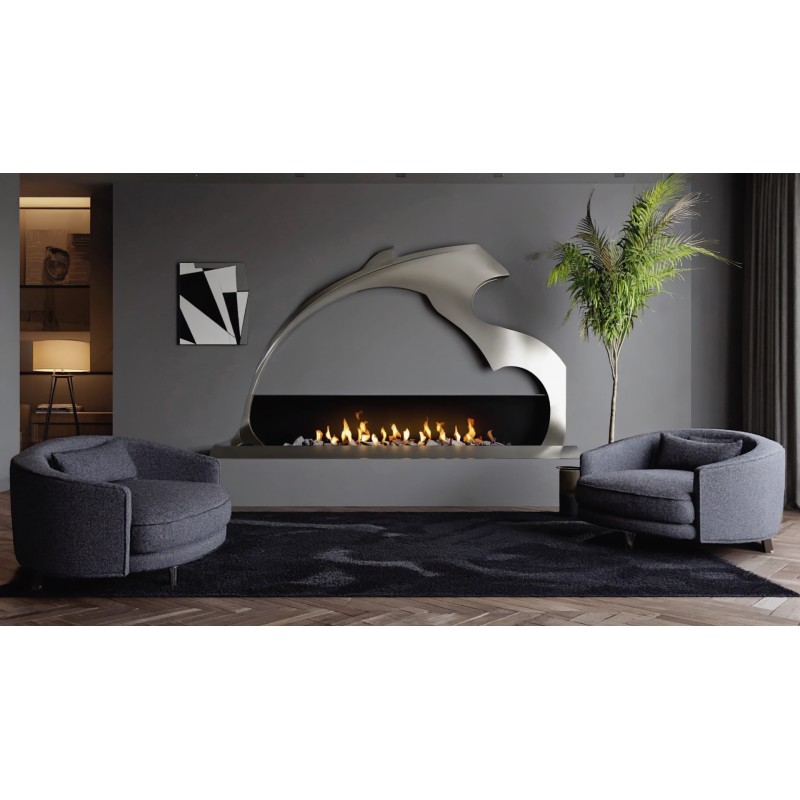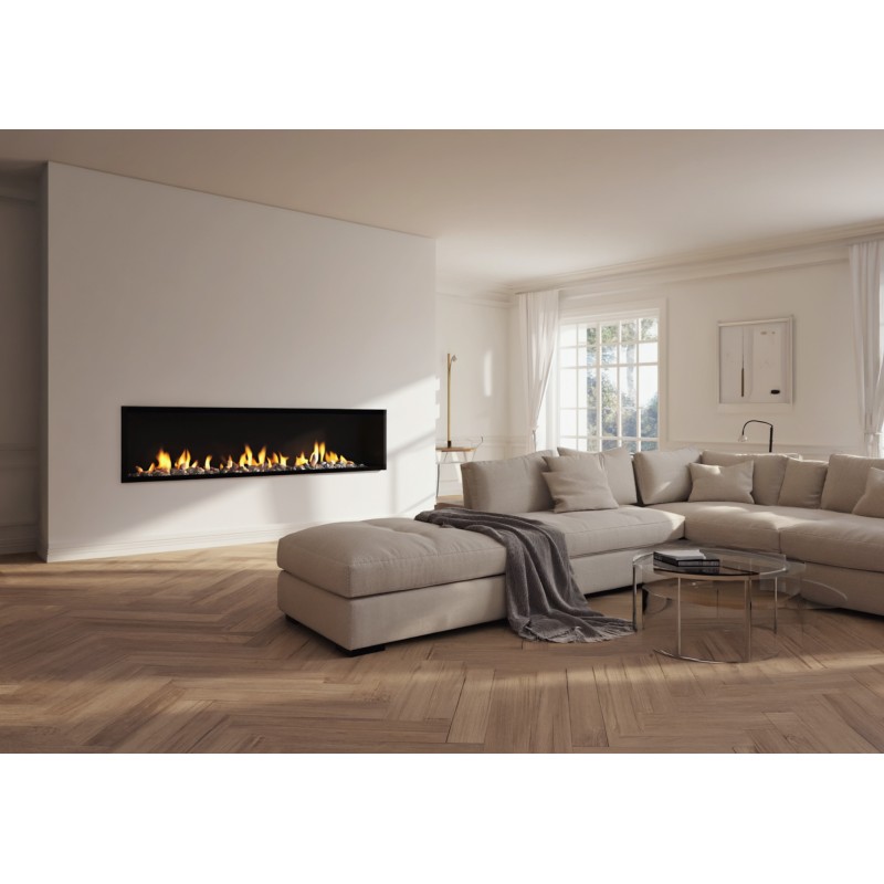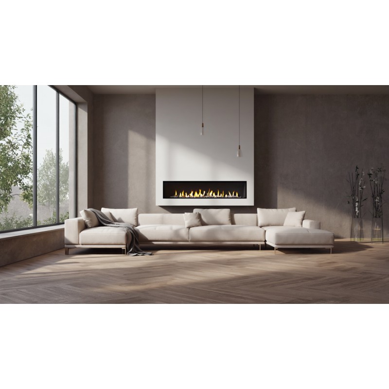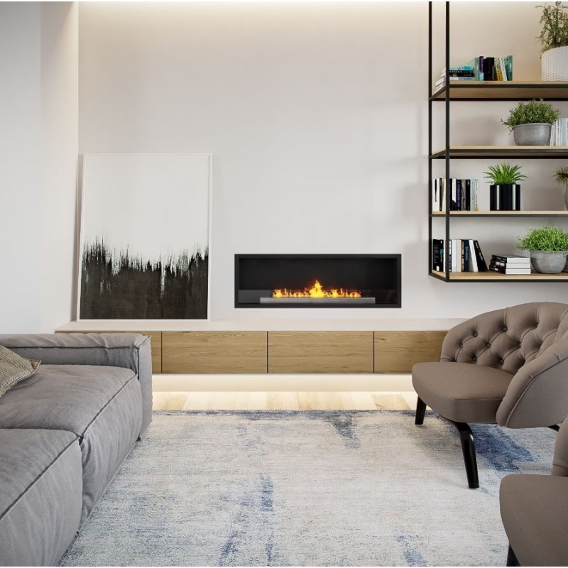 Biocamino da 150 cm con 1 bruciatore con fiamma unica da 90 cm, la sua alimentazione è il bioetanolo per ambienti medio grandi in grado di riscaldare una stanza in meno di 15 minuti.